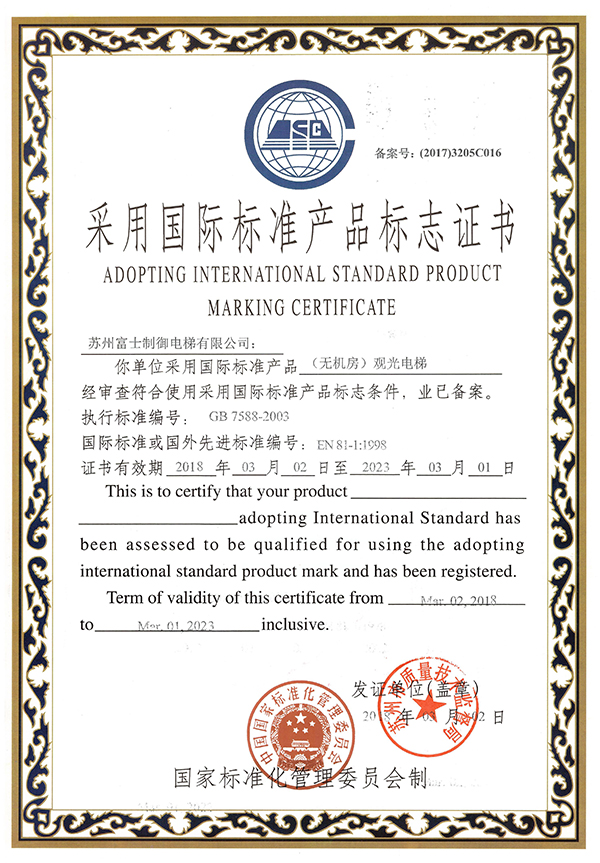 標志證書(無機房觀光電梯)