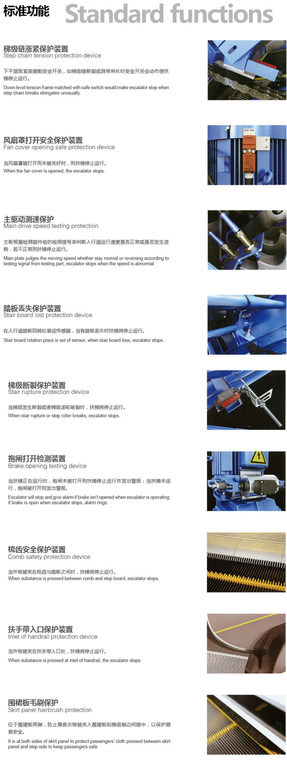 急停開關:在原有上下出入口處設置急停開關的基礎上,每隔5米還在外蓋板上設置一個急停開關,用于在突發事件中,可以盡快地使扶梯停止運行,保障乘客的安全。